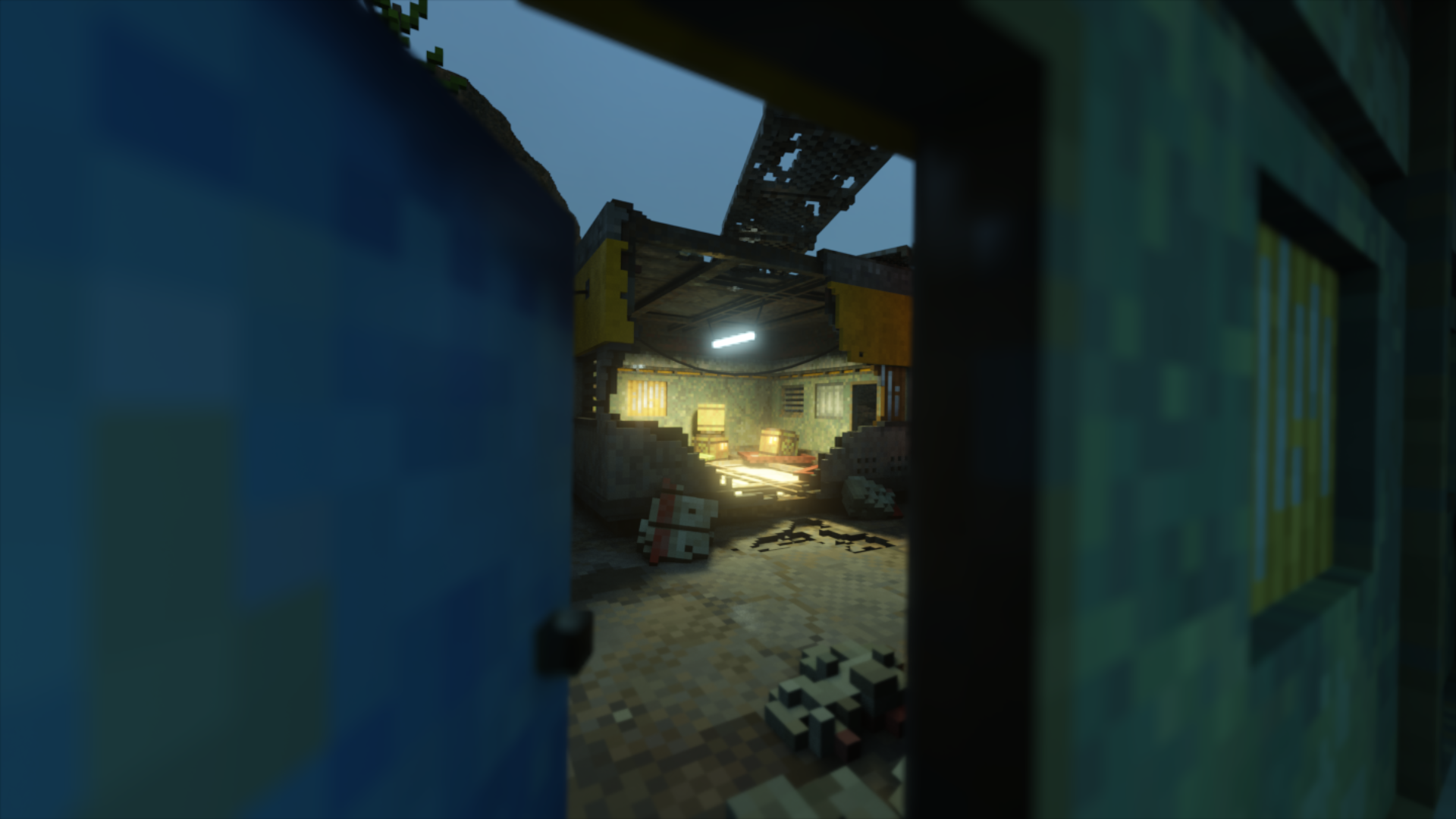 A peek through the door in the rubbles of an outpost.